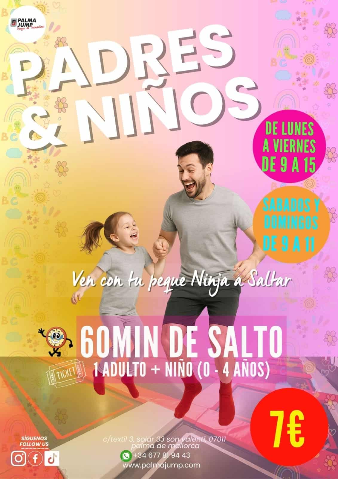 Palma Jump dispone de sesiones dedicados a los más pequeños. Podrán saltar durante una hora y un padre o tutor, sin precio adicional, también podrán saltar junto con los niños. Dispondrán de juguetes de espuma para disfrutar al máximo. Hasta los más pequeños pueden divertirse, aprender nuevas habilidades mientras conocen y hacen nuevos amigos.